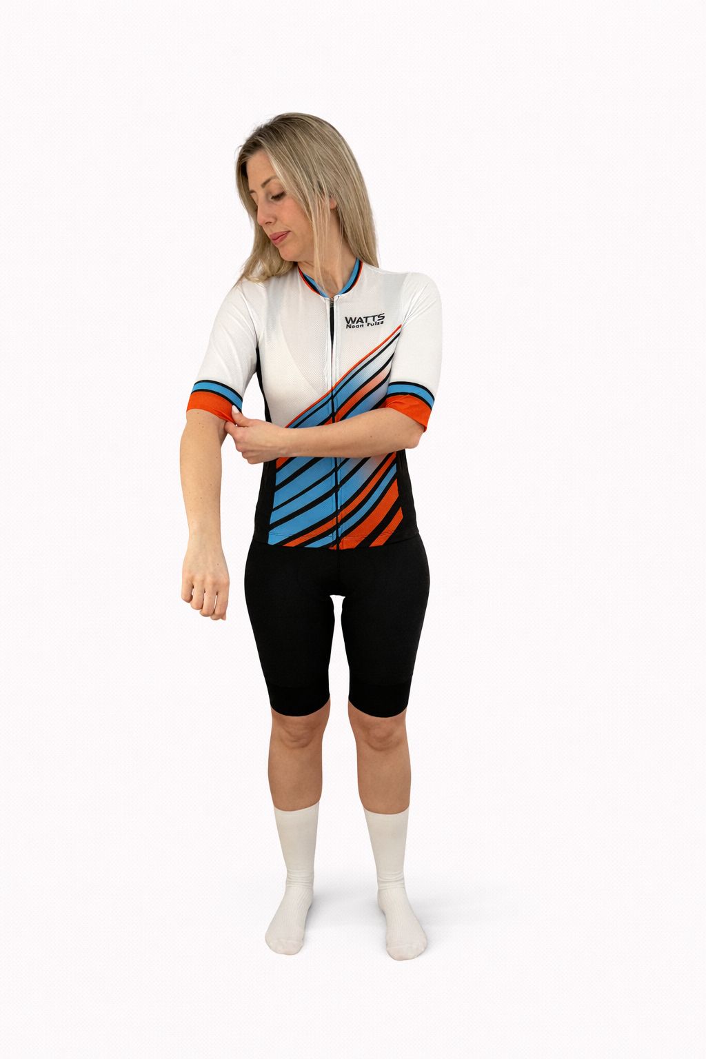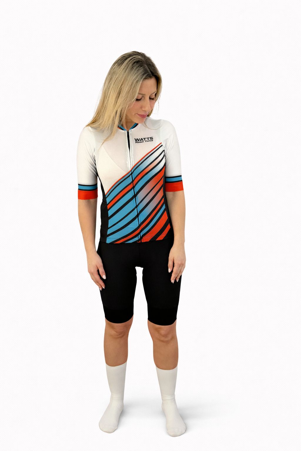 Su estética dinámica inspirada en las líneas de potencia y el flujo de energía representa la esencia de Watts Cycling Gear: potencia, carácter y evolución constante.